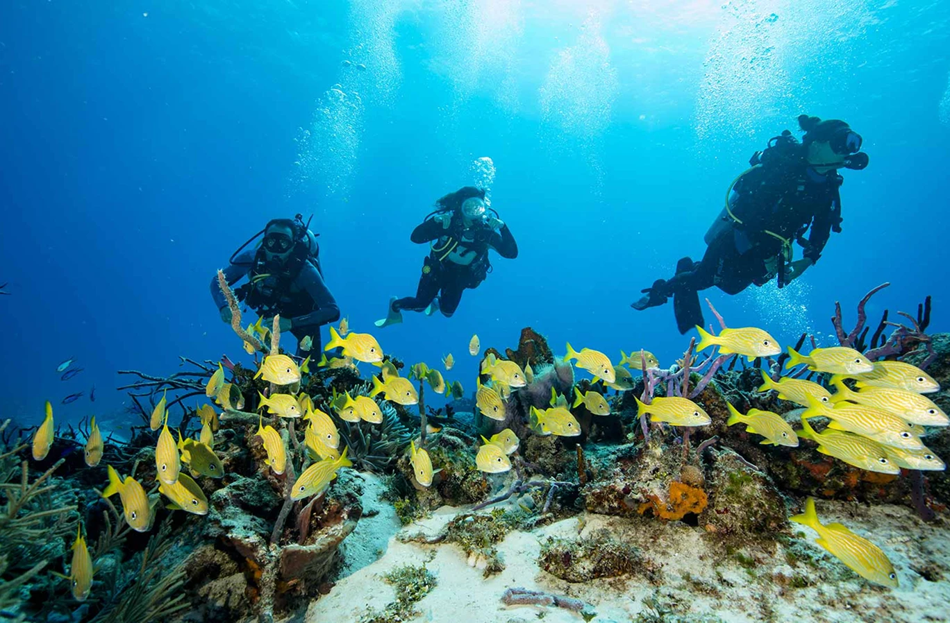 Explora las aguas cristalinas de Playa del Carmen, donde te sumergirás en arrecifes llenos de vida marina y podrás descubrir la magia del Caribe mexicano. ¡Una experiencia de buceo inolvidable en un paraíso natural!